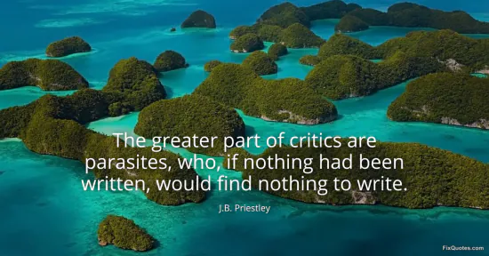 Priestley, J.B. "The greater part of critics are parasites, who, if nothing had been written, would find nothing to write." FixQuotes. January 18, 2026. https://fixquotes.com/quotes/the-greater-part-of-critics-are-parasites-who-if-7541/.