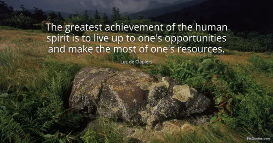 Clapiers, Luc de. "The greatest achievement of the human spirit is to live up to one's opportunities and make the most of one's resources." FixQuotes. January 15, 2026. https://fixquotes.com/quotes/the-greatest-achievement-of-the-human-spirit-is-72494/.