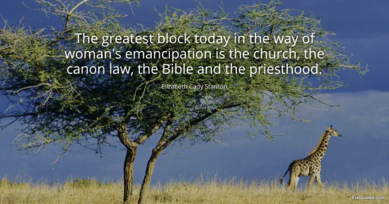 Stanton, Elizabeth Cady. (2026, January 17). The greatest block today in the way of woman's emancipation is the church, the canon law, the Bible and the priesthood. FixQuotes. https://fixquotes.com/quotes/the-greatest-block-today-in-the-way-of-womans-68142/