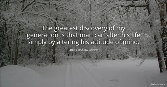 Adams, James Truslow. "The greatest discovery of my generation is that man can alter his life simply by altering his attitude of mind." FixQuotes. January 16, 2026. https://fixquotes.com/quotes/the-greatest-discovery-of-my-generation-is-that-112754/.