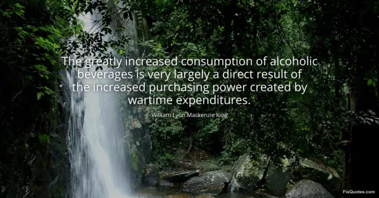 King, William Lyon Mackenzie. "The greatly increased consumption of alcoholic beverages is very largely a direct result of the increased purchasing power created by wartime expenditures." FixQuotes. January 16, 2026. https://fixquotes.com/quotes/the-greatly-increased-consumption-of-alcoholic-100252/.