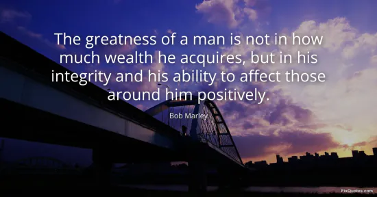 Marley, Bob. "The greatness of a man is not in how much wealth he acquires, but in his integrity and his ability to affect those around him positively." FixQuotes. February 8, 2026. https://fixquotes.com/quotes/the-greatness-of-a-man-is-not-in-how-much-wealth-172000/.