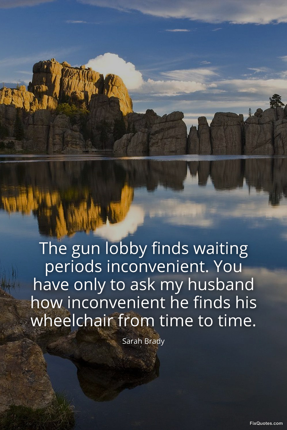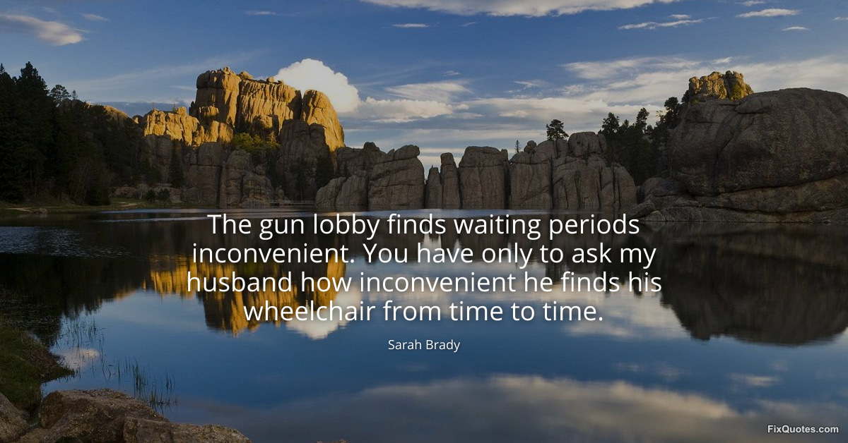 Brady, Sarah. (2026, January 15). The gun lobby finds waiting periods inconvenient. You have only to ask my husband how inconvenient he finds his wheelchair from time to time. FixQuotes. https://fixquotes.com/quotes/the-gun-lobby-finds-waiting-periods-inconvenient-157203/