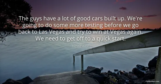 Marlin, Sterling. "The guys have a lot of good cars built up. We're going to do some more testing before we go back to Las Vegas and try to win at Vegas again. We need to get off to a quick start." FixQuotes. January 16, 2026. https://fixquotes.com/quotes/the-guys-have-a-lot-of-good-cars-built-up-were-120808/.