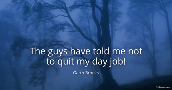 Brooks, Garth. (2026, February 19). The guys have told me not to quit my day job! FixQuotes. https://fixquotes.com/quotes/the-guys-have-told-me-not-to-quit-my-day-job-54670/
