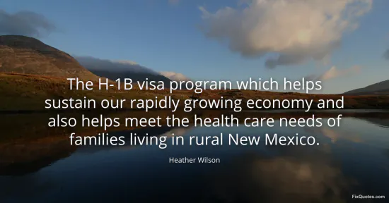 Wilson, Heather. "The H-1B visa program which helps sustain our rapidly growing economy and also helps meet the health care needs of families living in rural New Mexico." FixQuotes. January 16, 2026. https://fixquotes.com/quotes/the-h-1b-visa-program-which-helps-sustain-our-112343/.