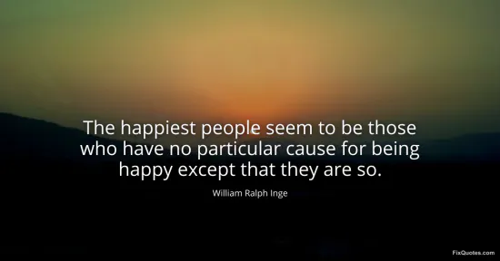 Inge, William Ralph. "The happiest people seem to be those who have no particular cause for being happy except that they are so." FixQuotes. February 16, 2026. https://fixquotes.com/quotes/the-happiest-people-seem-to-be-those-who-have-no-15946/.