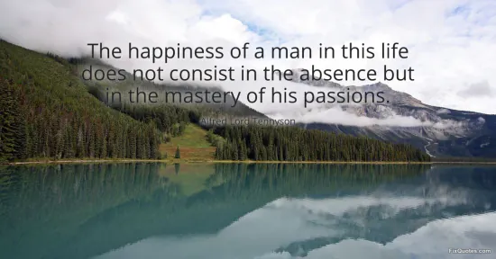 Tennyson, Alfred Lord. "The happiness of a man in this life does not consist in the absence but in the mastery of his passions." FixQuotes. January 15, 2026. https://fixquotes.com/quotes/the-happiness-of-a-man-in-this-life-does-not-40540/.
