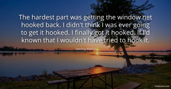 Marlin, Sterling. (2026, January 16). The hardest part was getting the window net hooked back. I didn't think I was ever going to get it hooked. I finally got it hooked. If I'd known that I wouldn't have tried to hook it. FixQuotes. https://fixquotes.com/quotes/the-hardest-part-was-getting-the-window-net-120809/