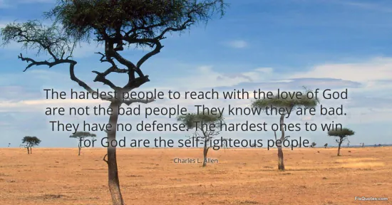 Allen, Charles L. "The hardest people to reach with the love of God are not the bad people. They know they are bad. They have no defense. The hardest ones to win for God are the self-righteous people." FixQuotes. January 15, 2026. https://fixquotes.com/quotes/the-hardest-people-to-reach-with-the-love-of-god-161137/.