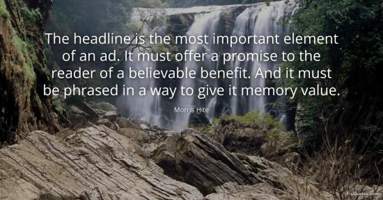 Hite, Morris. "The headline is the most important element of an ad. It must offer a promise to the reader of a believable benefit. And it must be phrased in a way to give it memory value." FixQuotes. January 16, 2026. https://fixquotes.com/quotes/the-headline-is-the-most-important-element-of-an-130106/.