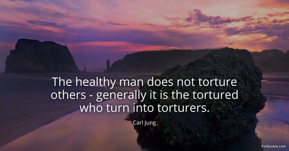 Jung, Carl. (2026, January 15). The healthy man does not torture others - generally it is the tortured who turn into torturers. FixQuotes. https://fixquotes.com/quotes/the-healthy-man-does-not-torture-others-42107/