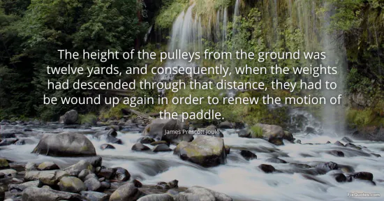 Joule, James Prescott. "The height of the pulleys from the ground was twelve yards, and consequently, when the weights had descended through that distance, they had to be wound up again in order to renew the motion of the paddle." FixQuotes. January 15, 2026. https://fixquotes.com/quotes/the-height-of-the-pulleys-from-the-ground-was-151034/.