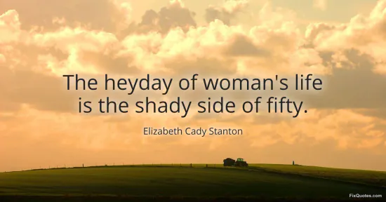 Stanton, Elizabeth Cady. "The heyday of woman's life is the shady side of fifty." FixQuotes. January 17, 2026. https://fixquotes.com/quotes/the-heyday-of-womans-life-is-the-shady-side-of-68143/.
