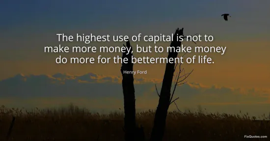Ford, Henry. (2026, January 18). The highest use of capital is not to make more money, but to make money do more for the betterment of life. FixQuotes. https://fixquotes.com/quotes/the-highest-use-of-capital-is-not-to-make-more-16679/