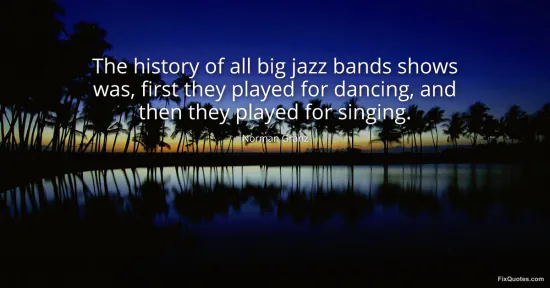 "The history of all big jazz bands shows was, first they played for dancing, and then they played for singing." FixQuotes, 15 Jan. 2026, https://fixquotes.com/quotes/the-history-of-all-big-jazz-bands-shows-was-first-158986/. Accessed 25 Feb. 2026.