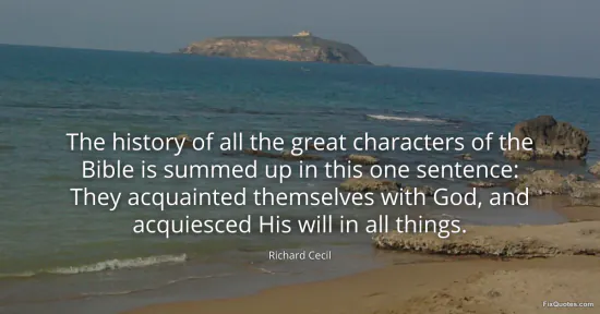 Cecil, Richard. (2026, January 16). The history of all the great characters of the Bible is summed up in this one sentence: They acquainted themselves with God, and acquiesced His will in all things. FixQuotes. https://fixquotes.com/quotes/the-history-of-all-the-great-characters-of-the-98138/