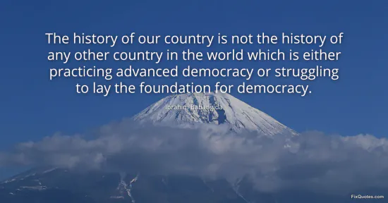 Babangida, Ibrahim. "The history of our country is not the history of any other country in the world which is either practicing advanced democracy or struggling to lay the foundation for democracy." FixQuotes. January 16, 2026. https://fixquotes.com/quotes/the-history-of-our-country-is-not-the-history-of-108356/.