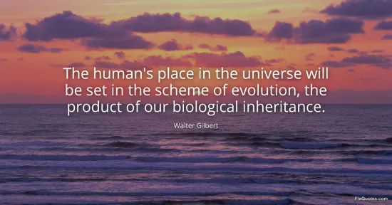 Gilbert, Walter. (2026, January 15). The human's place in the universe will be set in the scheme of evolution, the product of our biological inheritance. FixQuotes. https://fixquotes.com/quotes/the-humans-place-in-the-universe-will-be-set-in-152804/