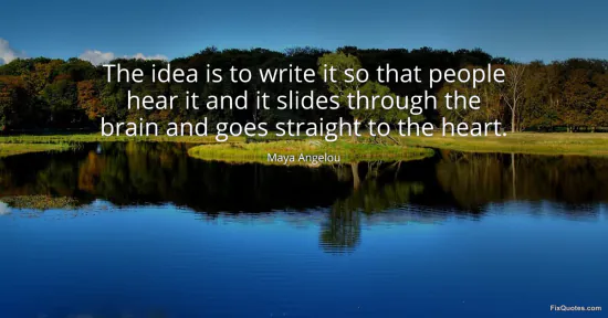Angelou, Maya. "The idea is to write it so that people hear it and it slides through the brain and goes straight to the heart." FixQuotes. January 14, 2026. https://fixquotes.com/quotes/the-idea-is-to-write-it-so-that-people-hear-it-26713/.