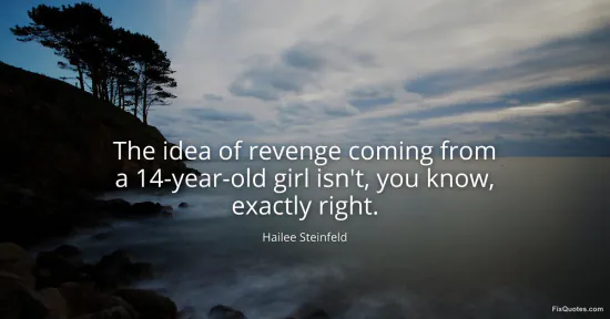 Steinfeld, Hailee. "The idea of revenge coming from a 14-year-old girl isn't, you know, exactly right." FixQuotes. January 17, 2026. https://fixquotes.com/quotes/the-idea-of-revenge-coming-from-a-14-year-old-68036/.