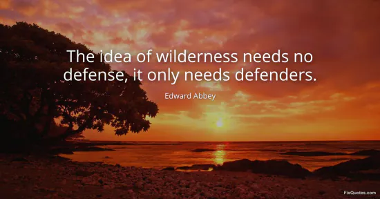 Abbey, Edward. "The idea of wilderness needs no defense, it only needs defenders." FixQuotes. January 15, 2026. https://fixquotes.com/quotes/the-idea-of-wilderness-needs-no-defense-it-only-51168/.