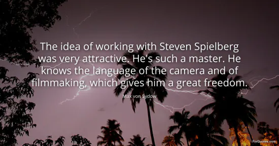 Sydow, Max von. (2026, January 17). The idea of working with Steven Spielberg was very attractive. He's such a master. He knows the language of the camera and of filmmaking, which gives him a great freedom. FixQuotes. https://fixquotes.com/quotes/the-idea-of-working-with-steven-spielberg-was-68816/