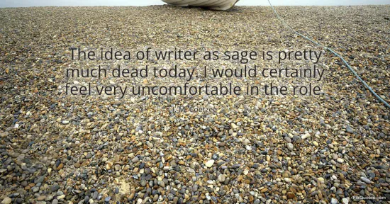 "The idea of writer as sage is pretty much dead today. I would certainly feel very uncomfortable in the role." FixQuotes, 16 Jan. 2026, https://fixquotes.com/quotes/the-idea-of-writer-as-sage-is-pretty-much-dead-91096/. Accessed 12 Feb. 2026.