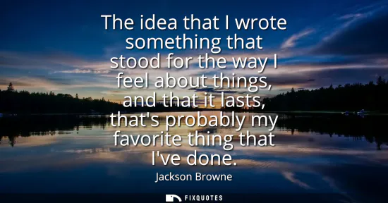 "The idea that I wrote something that stood for the way I feel about things, and that it lasts, that's probably my favorite thing that I've done"