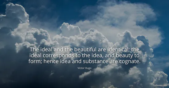 Hugo, Victor. (2026, January 18). The ideal and the beautiful are identical; the ideal corresponds to the idea, and beauty to form; hence idea and substance are cognate. FixQuotes. https://fixquotes.com/quotes/the-ideal-and-the-beautiful-are-identical-the-10564/