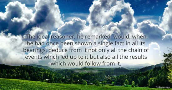 Doyle, Arthur Conan. "The ideal reasoner, he remarked, would, when he had once been shown a single fact in all its bearings, deduce from it not only all the chain of events which led up to it but also all the results which would follow from it." FixQuotes. January 15, 2026. https://fixquotes.com/quotes/the-ideal-reasoner-he-remarked-would-when-he-had-12870/.