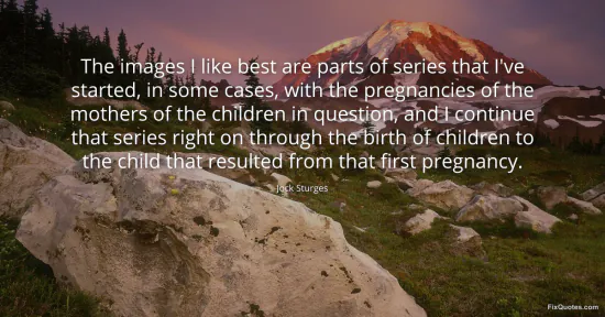 Sturges, Jock. "The images I like best are parts of series that I've started, in some cases, with the pregnancies of the mothers of the children in question, and I continue that series right on through the birth of children to the child that resulted from that first pregnancy." FixQuotes. January 17, 2026. https://fixquotes.com/quotes/the-images-i-like-best-are-parts-of-series-that-32627/.
