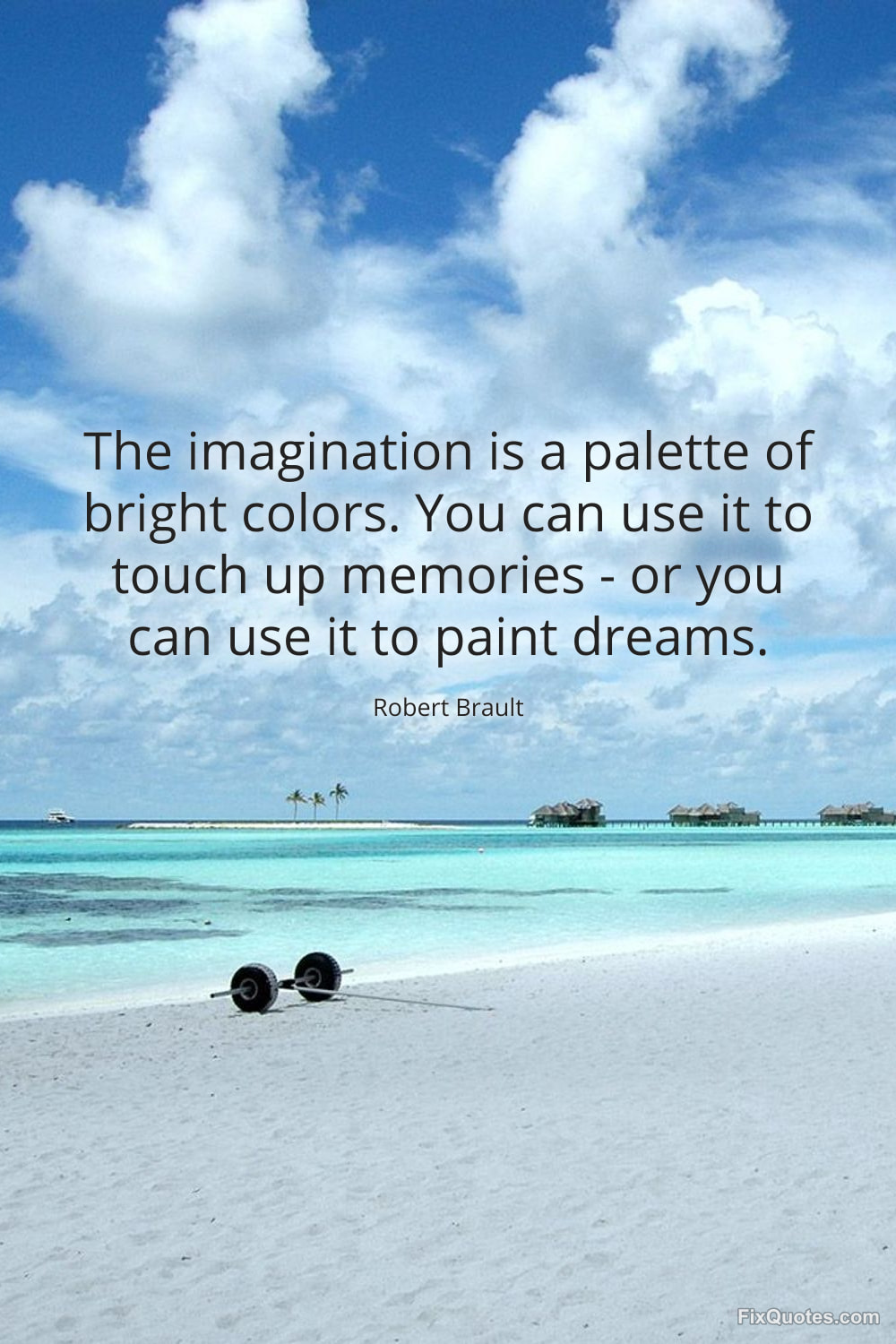 Brault, Robert. (2026, February 16). The imagination is a palette of bright colors. You can use it to touch up memories - or you can use it to paint dreams. FixQuotes. https://fixquotes.com/quotes/the-imagination-is-a-palette-of-bright-colors-you-183907/