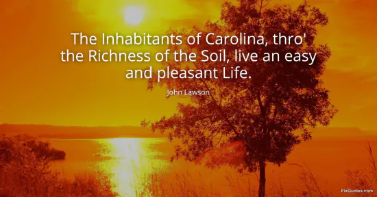 Lawson, John. "The Inhabitants of Carolina, thro' the Richness of the Soil, live an easy and pleasant Life." FixQuotes. January 15, 2026. https://fixquotes.com/quotes/the-inhabitants-of-carolina-thro-the-richness-of-60995/.