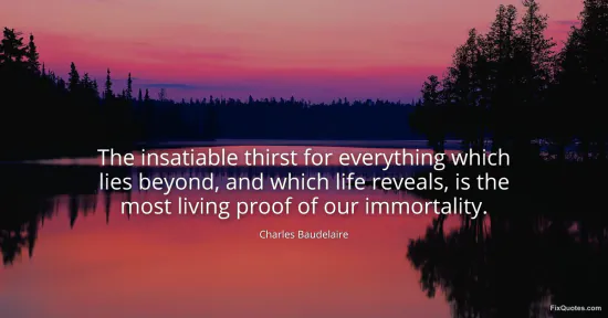 Baudelaire, Charles. (2026, January 14). The insatiable thirst for everything which lies beyond, and which life reveals, is the most living proof of our immortality. FixQuotes. https://fixquotes.com/quotes/the-insatiable-thirst-for-everything-which-lies-40579/