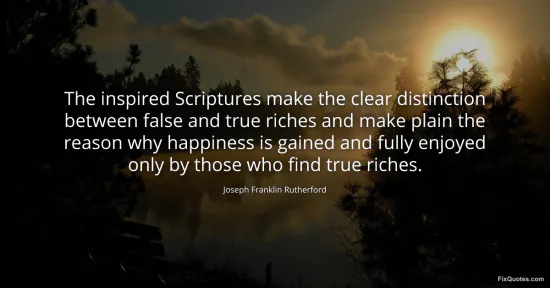 "The inspired Scriptures make the clear distinction between false and true riches and make plain the reason why happiness is gained and fully enjoyed only by those who find true riches"