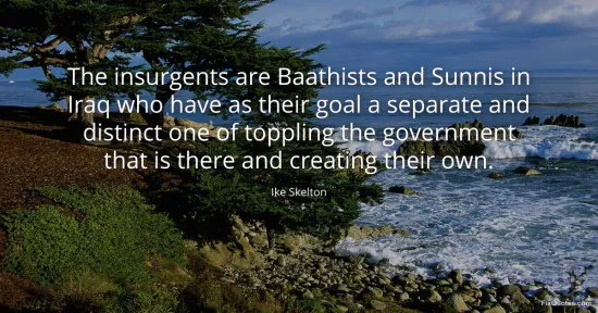 Skelton, Ike. (2026, January 15). The insurgents are Baathists and Sunnis in Iraq who have as their goal a separate and distinct one of toppling the government that is there and creating their own. FixQuotes. https://fixquotes.com/quotes/the-insurgents-are-baathists-and-sunnis-in-iraq-164807/
