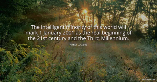 Clarke, Arthur C. (2026, January 18). The intelligent minority of this world will mark 1 January 2001 as the real beginning of the 21st century and the Third Millennium. FixQuotes. https://fixquotes.com/quotes/the-intelligent-minority-of-this-world-will-mark-12375/