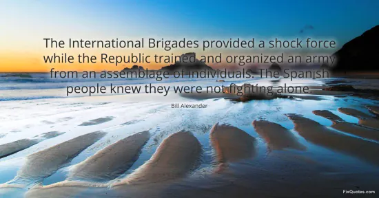 Alexander, Bill. (2026, January 16). The International Brigades provided a shock force while the Republic trained and organized an army from an assemblage of individuals. The Spanish people knew they were not fighting alone. FixQuotes. https://fixquotes.com/quotes/the-international-brigades-provided-a-shock-force-109637/
