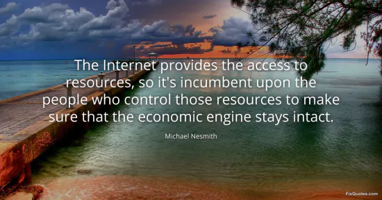Nesmith isn’t marveling at the Internet as a shiny tool; he’s treating it like a power grid. Access is the promise, but maintenance is the real politics. By framing the Internet as “provides the access to resources,” he quietly demotes the romance of digital freedom and puts a spotlight on whoever owns the pipes, platforms, and catalogs. The loaded phrase “incumbent upon” is doing a lot of work: it shifts responsibility away from users and toward gatekeepers, suggesting that tech’s vaunted decentralization still ends in custodianship, decision-making, and, inevitably, leverage.