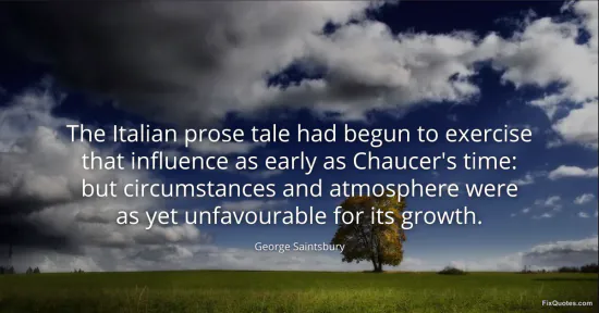 "The Italian prose tale had begun to exercise that influence as early as Chaucer's time: but circumstances and atmosphere were as yet unfavourable for its growth"
