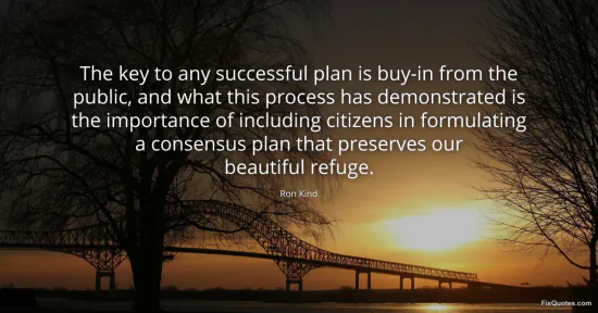 Kind, Ron. (2026, January 16). The key to any successful plan is buy-in from the public, and what this process has demonstrated is the importance of including citizens in formulating a consensus plan that preserves our beautiful refuge. FixQuotes. https://fixquotes.com/quotes/the-key-to-any-successful-plan-is-buy-in-from-the-95729/