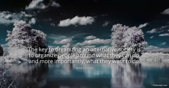 Hoffman, Abbie. (2026, January 16). The key to organizing an alternative society is to organize people around what they can do, and more importantly, what they want to do. FixQuotes. https://fixquotes.com/quotes/the-key-to-organizing-an-alternative-society-is-137381/
