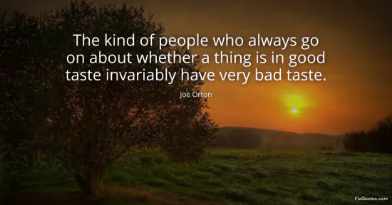 Orton, Joe. "The kind of people who always go on about whether a thing is in good taste invariably have very bad taste." FixQuotes. January 16, 2026. https://fixquotes.com/quotes/the-kind-of-people-who-always-go-on-about-whether-92620/.