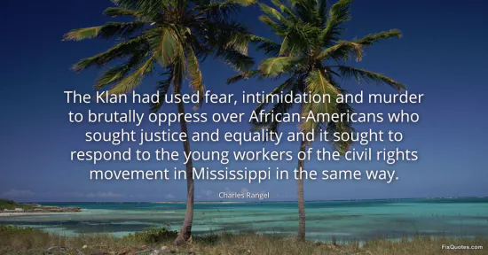 Rangel, Charles. (2026, January 14). The Klan had used fear, intimidation and murder to brutally oppress over African-Americans who sought justice and equality and it sought to respond to the young workers of the civil rights movement in Mississippi in the same way. FixQuotes. https://fixquotes.com/quotes/the-klan-had-used-fear-intimidation-and-murder-to-79696/
