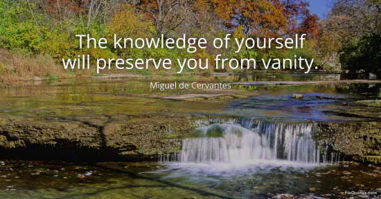 Cervantes, Miguel de. (2026, January 17). The knowledge of yourself will preserve you from vanity. FixQuotes. https://fixquotes.com/quotes/the-knowledge-of-yourself-will-preserve-you-from-80158/