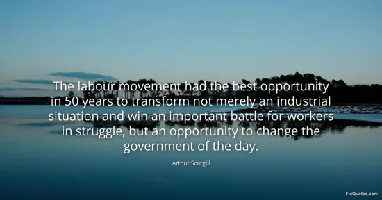 Scargill, Arthur. "The labour movement had the best opportunity in 50 years to transform not merely an industrial situation and win an important battle for workers in struggle, but an opportunity to change the government of the day." FixQuotes. January 17, 2026. https://fixquotes.com/quotes/the-labour-movement-had-the-best-opportunity-in-34468/.
