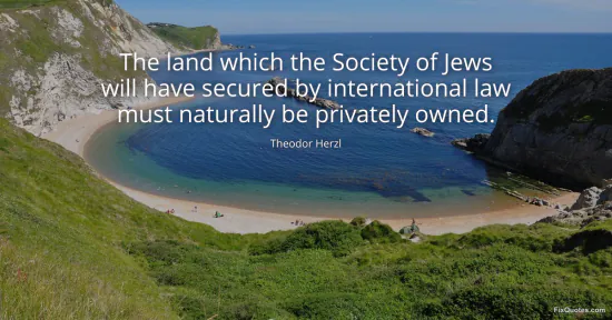 "The land which the Society of Jews will have secured by international law must naturally be privately owned." FixQuotes, 16 Jan. 2026, https://fixquotes.com/quotes/the-land-which-the-society-of-jews-will-have-96668/. Accessed 2 Mar. 2026.