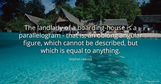 Leacock, Stephen. (2026, January 18). The landlady of a boarding-house is a parallelogram - that is, an oblong angular figure, which cannot be described, but which is equal to anything. FixQuotes. https://fixquotes.com/quotes/the-landlady-of-a-boarding-house-is-a-10028/