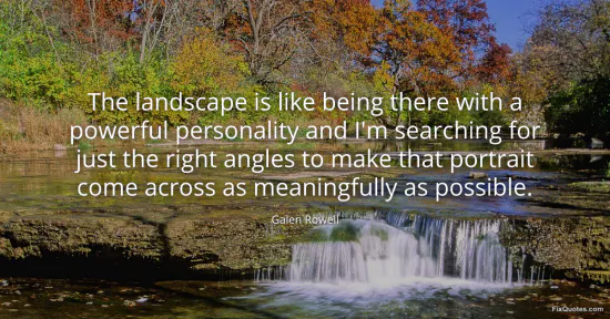 "The landscape is like being there with a powerful personality and I'm searching for just the right angles to make that portrait come across as meaningfully as possible"